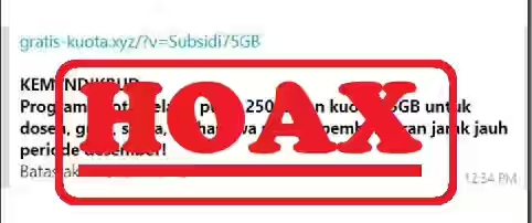 Beredar sebuah pesan berantai melalui WhatsApp yang berisi tautan untuk mengklaim bantuan paket kuota internet sebesar 75 GB dan pulsa sebesar Rp250 ribu dari Kemendikbud untuk periode Desember. Dalam pesan tersebut juga disebutkan bahwa batas akhir pengisian formulir melalui tautan yang dikirimkan adalah pada 13 Oktober 2021.