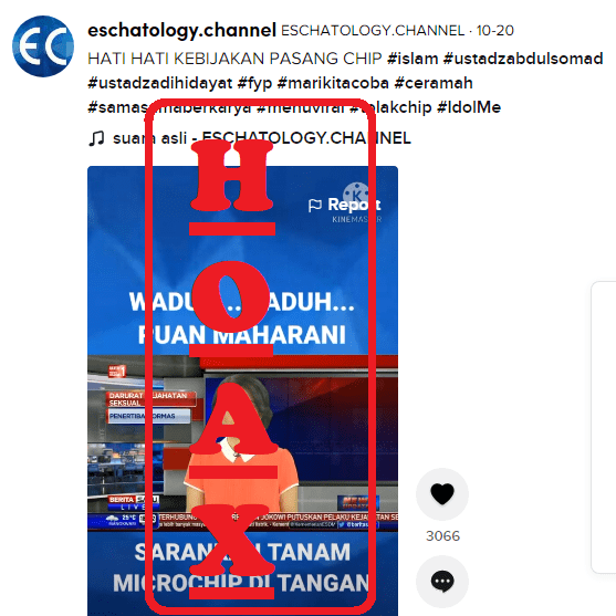 Sebuah akun media sosial Tiktok bernama @ESCHATOLOGY.CHANEL mengunggah video dengan pengantar narasi yang menyatakan bahwa Puan Maharani menyarankan penanaman microchip di tangan. Video ini mengambil hasil wawancara Puan Maharani yang saat itu menjabat sebagai Menteri Koordinator Pembangunan Manusia dan Kebudayaan.
