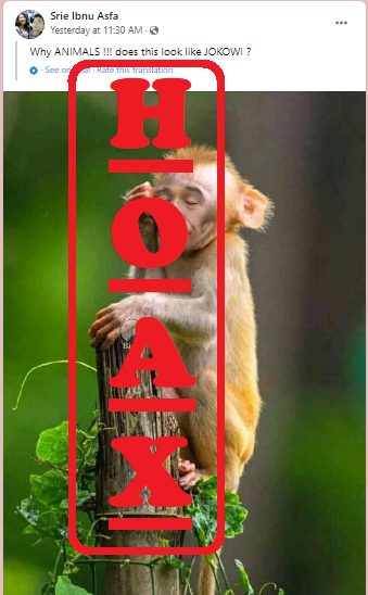 Akun facebook bernama Sri Ibnu Asfa https://www.facebook.com/groups/294702918200642/user/100026696170285/ mengunggah foto Presiden Jokowi mengedit bada Presiden dengan berbadan Monyet dengan tulisan “Why ANIMALS !!! does this look like JOKOWI”.