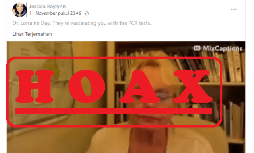 Beredar sebuah narasi oleh akun Facebook Jessica Raylynn yang mengatakan bahwa tes PCR merupakan cara untuk melakukan vaksinasi. Narasi tersebut juga mengunggah video yang berisikan klaim dari dr. Lorraine Day, salah satu dokter dari Amerika Serikat yang mengatakan bahwa tes PCR merupakan bentuk vaksinasi terselubung.