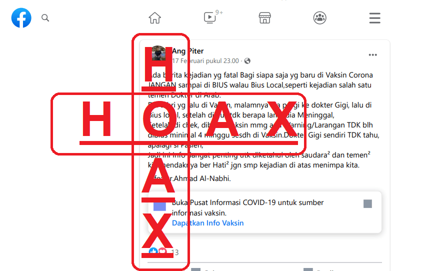 Dikutip dari katadata.co.id , Asosiasi Dokter Gigi Malaysia (MDA) juga telah membantah informasi tersebut. Klaim bahaya anestesi gigi usai vaksinasi adalah salah dan sesat. Tidak ada bukti ilmiah atas dugaan itu.