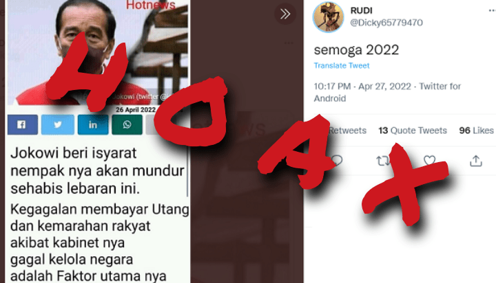 Beredar sebuah foto tangkapan layar dengan narasi bahwa Presiden Joko Widodo (Jokowi) memberi isyarat akan mundur usai lebaran. Foto ini beredar di media sosial.