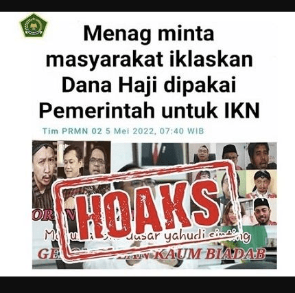 Kabar tersebut beredar melalui media sosial dengan menampilkan sebuah tangkapan layar pemberitaan dengan judul “Menag minta masyarakat ikhlaskan Dana Haji dipakai Pemerintah untuk IKN“.