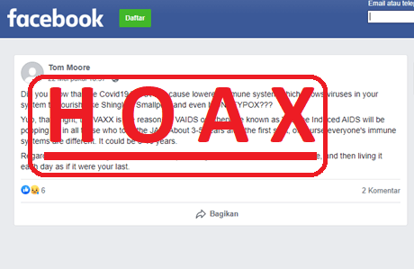 Beredar sebuah narasi di media sosial Facebook yang menyebutkan bahwa vaksin Covid 19 dapat menyebabkan imunodefisiensi di dalam tubuh manusia. Dalam narasi ini disebutkan bahwa sistem imun yang melemah adalah efek VAIDS yang menjadi penyebab munculnya penyakit seperti AIDS bahkan sampai cacar monyet. Kelemahan imun ini akan terjadi sejak suntikan vaksin pertama dan dampaknya akan terlihat pada 3-5 tahun atau 5-10 tahun mendatang.