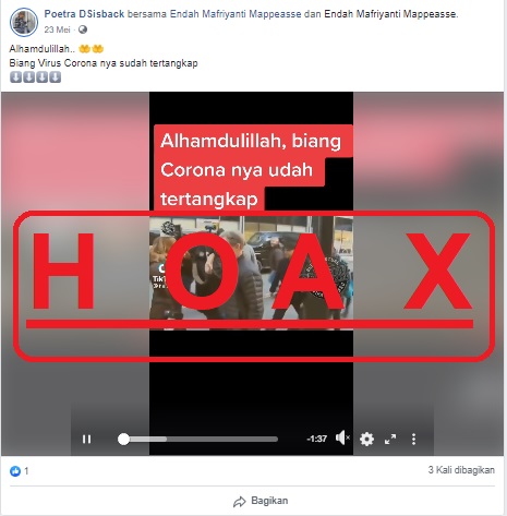 Beredar sebuah unggahan di media sosial yang mengklaim bahwa oknum yang menciptakan virus Corona sudah ditangkap. Dalam unggahan tersebut disematkan video yang memperlihatkan seorang pria ditangkap kepolisian dan diliput banyak wartawan. Pria dalam video tersebut diduga sebagai ilmuan yang menciptakan virus Corona tipe baru penyebab Covid-19.