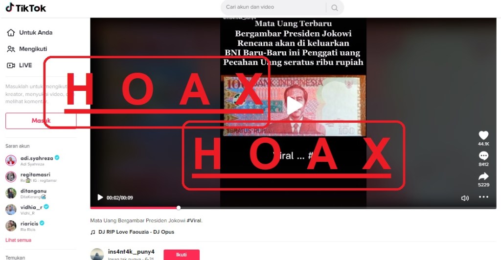 Namun melansir dari kompas.com, Direktur Eksekutif-Kepala Departemen Komunikasi Bank Indonesia Erwin Haryono membantah informasi terkait dikeluarkannya uang kertas pecahan Rp100 ribu bergambar Presiden Joko Widodo oleh BNI sebagaimana informasi yang disampaikan oleh pemilik akun TikTok @ins4nt4k_puny4.