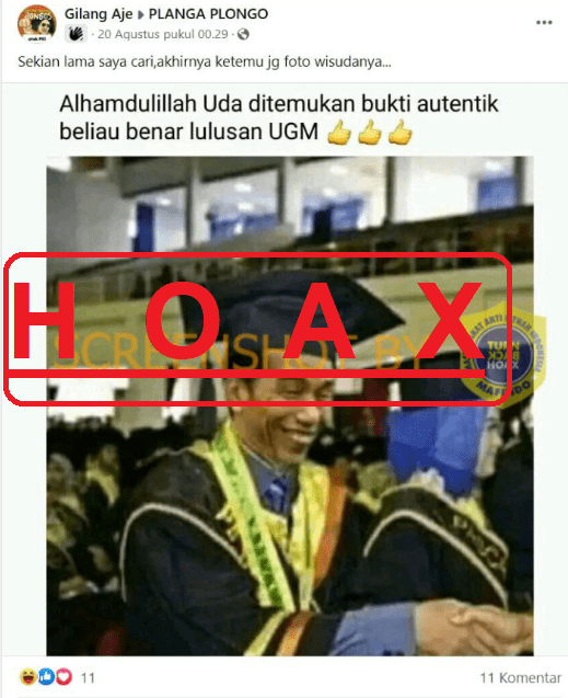 Akun Facebook Gilang Aje memposting sebuah gambar yang diklaim merupakan gambar Jokowi saat wisuda. Postingan tersebut dibuat pada 20 Agustus 2022 lalu.