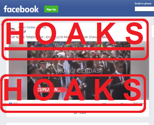 Beredar video dari halaman facebook bernama Kunci Cerdas dengan klaim narasi yang menyatakan bahwa Prabowo diusir keluar dari Istana Negara oleh Jokowi dikarenakan niat buruknya terbongkar.