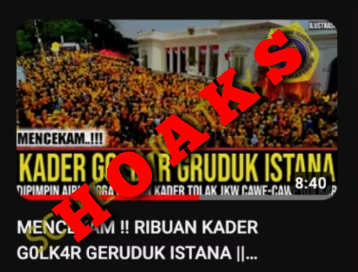 Narasi yang diberikan ialah “MENCEKAM !! RIBUAN KADER G0LK4R GERUDUK ISTANA || NYATAKAN SIKAP MAKZULKAN JKW”.